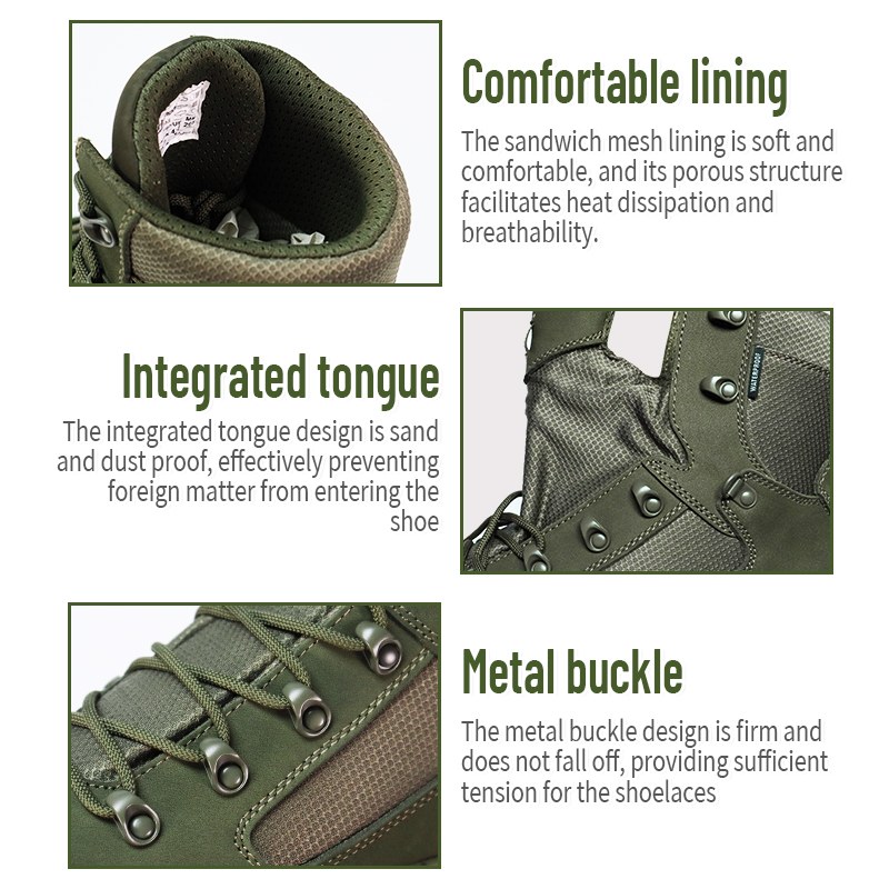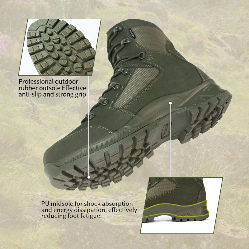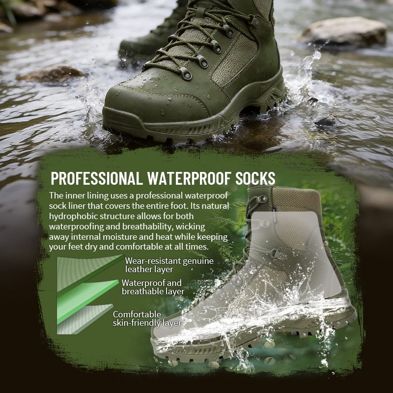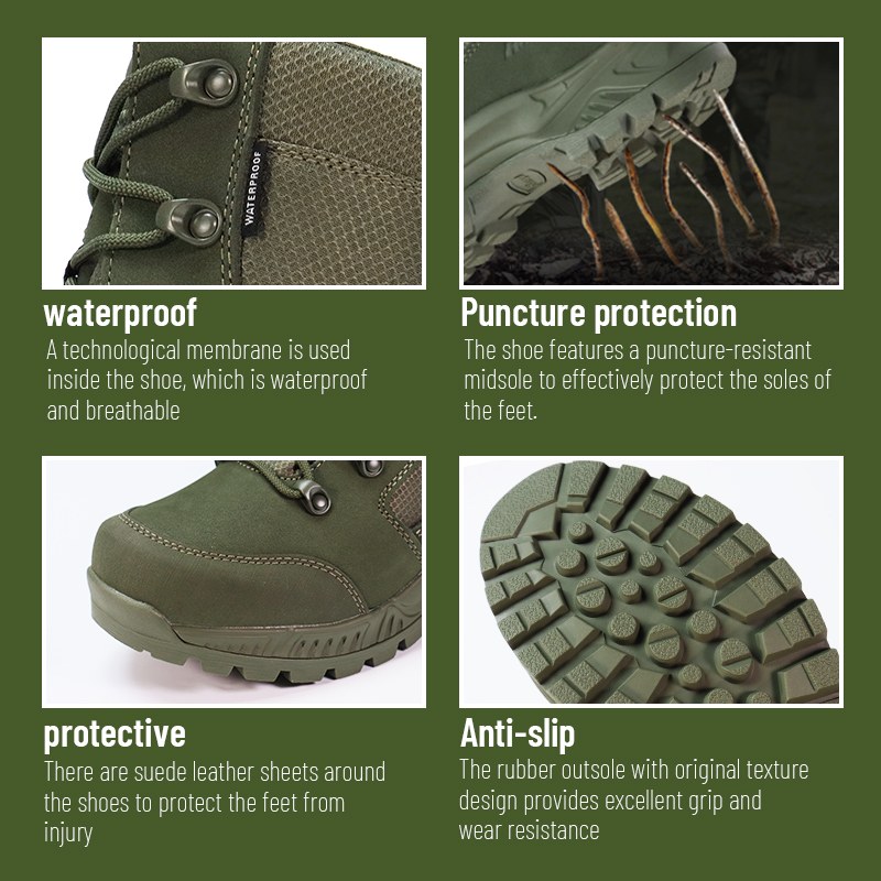 असभ्य भूभाग। लुकेका खतराहरू। अप्रत्याशित मैदान। पङ्चर-प्रुफ वाटरप्रूफ कम्ब्याट बुटहरू क्षणहरूको लागि बनाइन्छ जब तपाईं तल हेर्न र चिन्ता गर्न सक्नुहुन्न। पन्चर-प्रतिरोधी मिडसोलसँग इन्जिनियर गरिएको जसले नङ, गिलास, र धारिलो भग्नावशेषलाई रोक्छ, साथै पूर्ण वाटरप्रूफ सुरक्षा जसले तपाईंलाई भिजेको अवस्थाहरूमा हिँडिरहन्छ। थप जानकारीको लागि हामीलाई सोधपुछ पठाउनुहोस्।